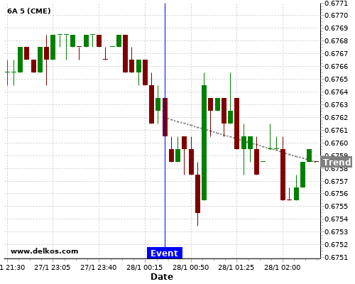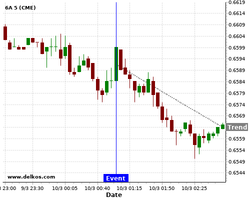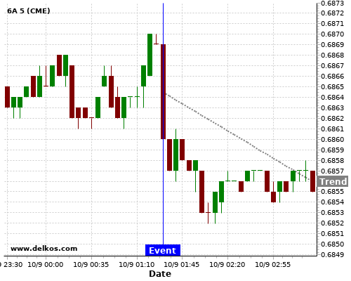 This probability is based on the last 12 AU NAB Business Confidence events, in which 3 of the last 6 events where the actual number was less than than the economist consensus resulted in an down trend of 6A.