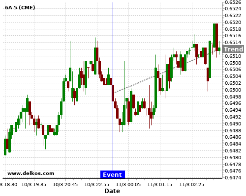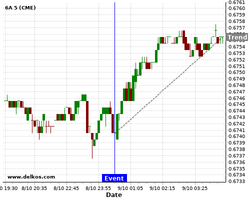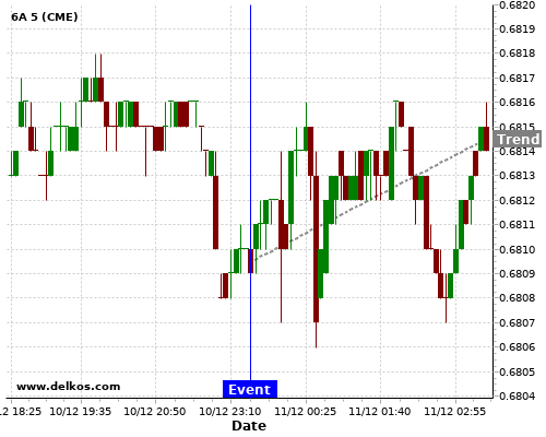 This probability is based on the last 12 AU Westpac Consumer Confidence Index events, in which 4 of the last 6 events where the actual number was less than than the economist consensus resulted in an up trend of 6A.