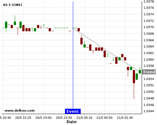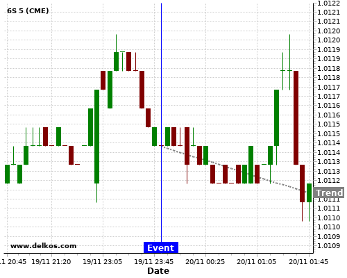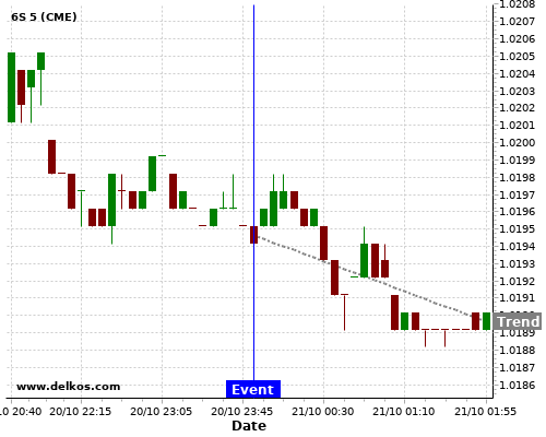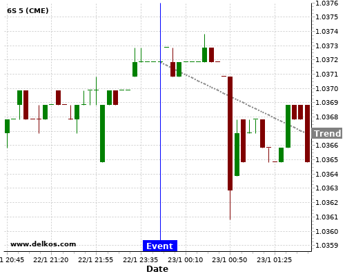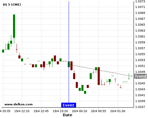 This probability is based on the last 12 JP Balance of Trade events, in which 5 of the last 6 events where the actual number was less than than the economist consensus resulted in an down trend of 6S.