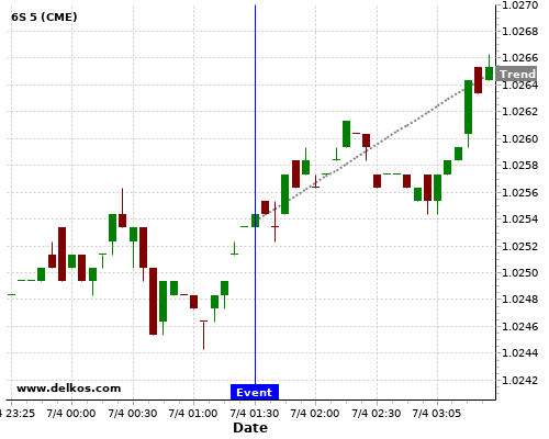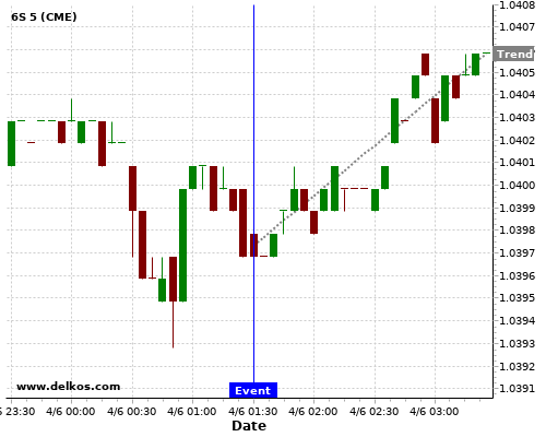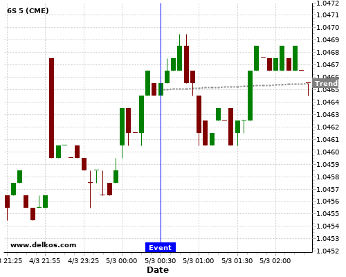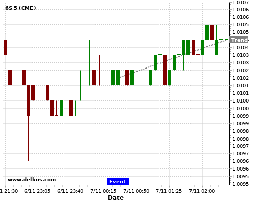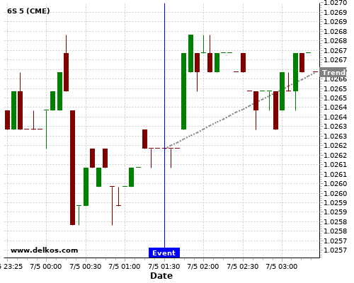 This probability is based on the last 12 AU Balance of Trade events, in which 5 of the last 6 events where the actual number was greater than than the economist consensus resulted in an up trend of 6S.