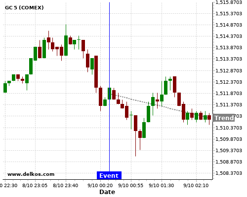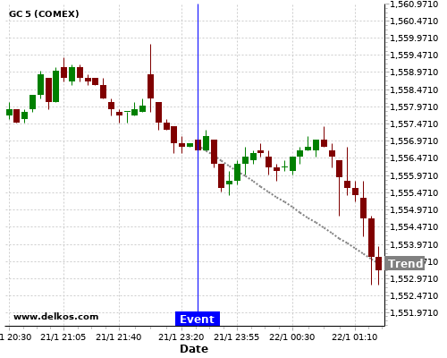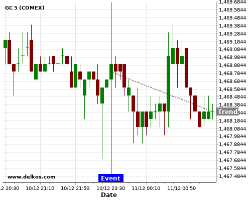 This probability is based on the last 12 AU Westpac Consumer Confidence Index events, in which 5 of the last 6 events where the actual number was less than than the economist consensus resulted in an down trend of GC.