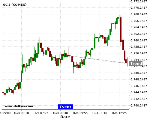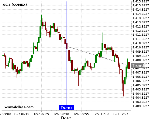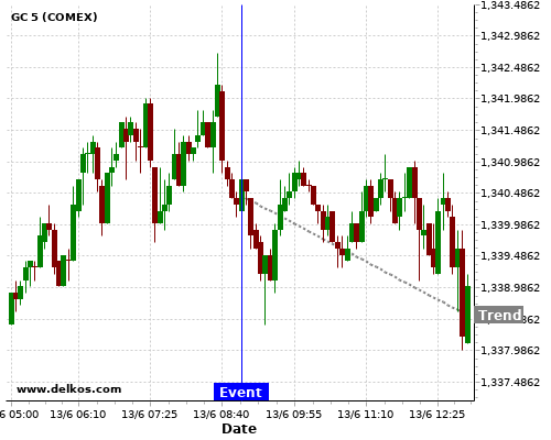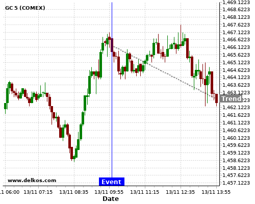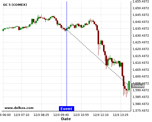 This probability is based on the last 12 EMU Industrial Production YoY events, in which 5 of the last 6 events where the actual number was greater than than the economist consensus resulted in an down trend of GC.