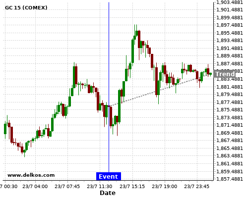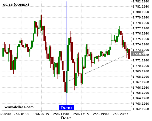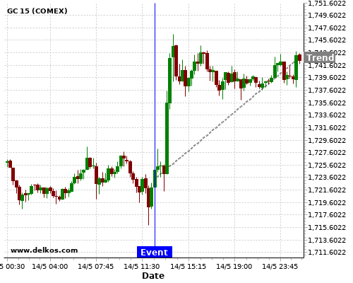 This probability is based on the last 12 US Continuing Jobless Claims events, in which 3 of the last 6 events where the actual number was less than than the economist consensus resulted in an up trend of GC.