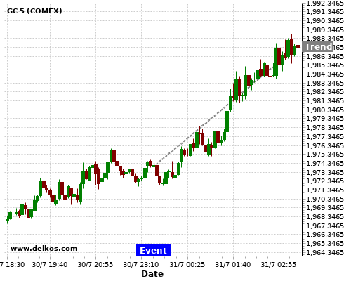 This probability is based on the last 12 JP Unemployment Rate events, in which 2 of the last 6 events where the actual number was less than than the economist consensus resulted in an up trend of GC.
