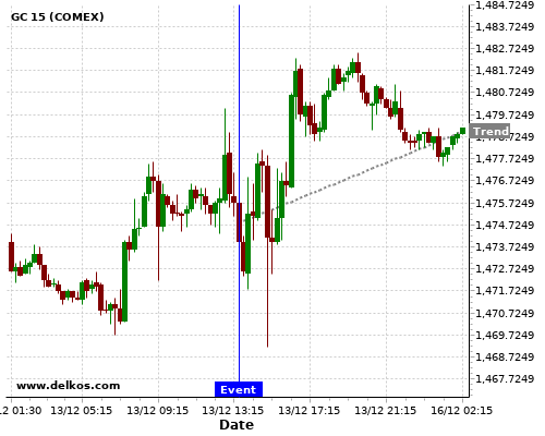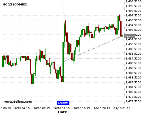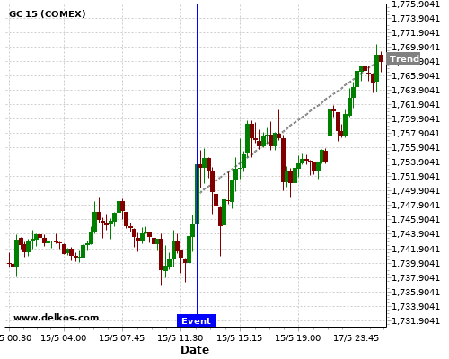 This probability is based on the last 12 US Retail Sales MoM events, in which 4 of the last 6 events where the actual number was less than than the economist consensus resulted in an up trend of GC.