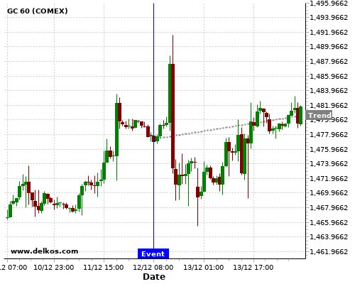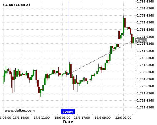 This probability is based on the last 12 CH SNB Interest Rate Decision events, in which 6 of the last 12 events where the actual number was equal to than the economist consensus resulted in an up trend of GC.