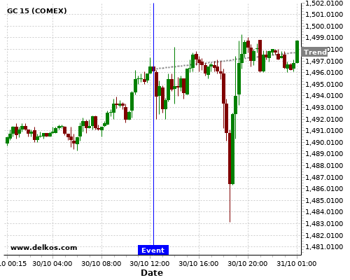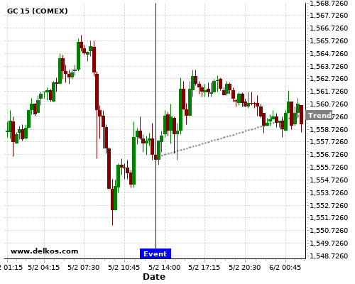 This probability is based on the last 12 US ADP Employment Change events, in which 2 of the last 6 events where the actual number was greater than than the economist consensus resulted in an up trend of GC.