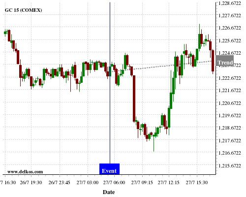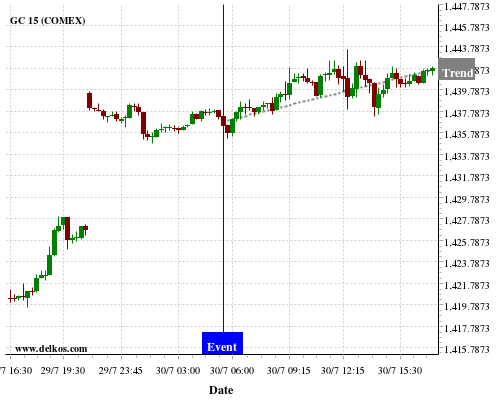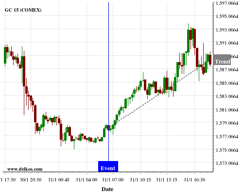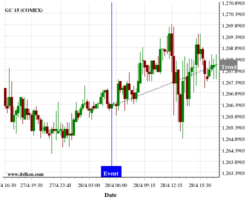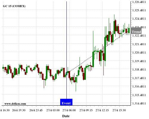 This probability is based on the last 12 FR GDP Growth Rate QoQ Prel events, in which 5 of the last 6 events where the actual number was less than than the economist consensus resulted in an up trend of GC.