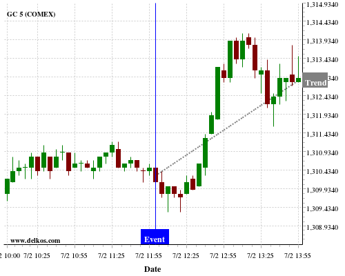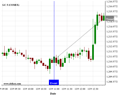 This probability is based on the last 12 GB BoE Interest Rate Decision events, in which 10 of the last 12 events where the actual number was equal to than the economist consensus resulted in an up trend of GC.