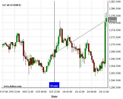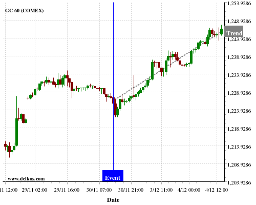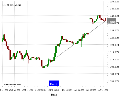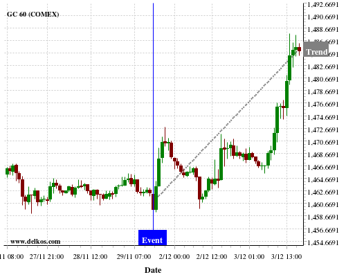 This probability is based on the last 12 CA GDP Growth Rate QoQ events, in which 5 of the last 6 events where the actual number was greater than than the economist consensus resulted in an up trend of GC.