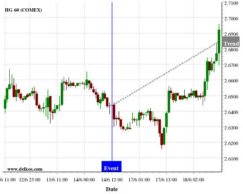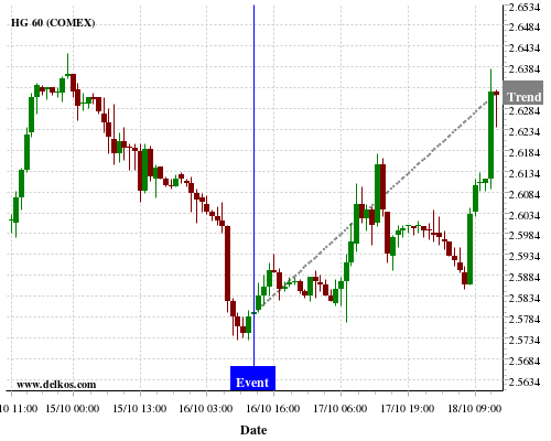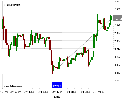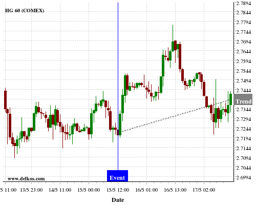This probability is based on the last 12 US Retail Sales MoM events, in which 4 of the last 6 events where the actual number was less than than the economist consensus resulted in an up trend of HG.