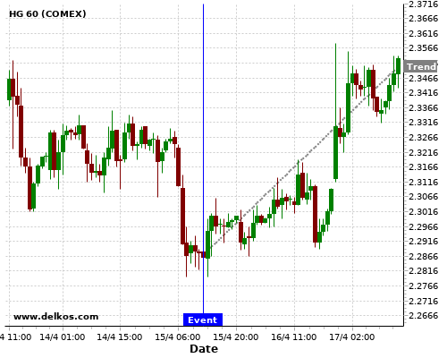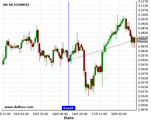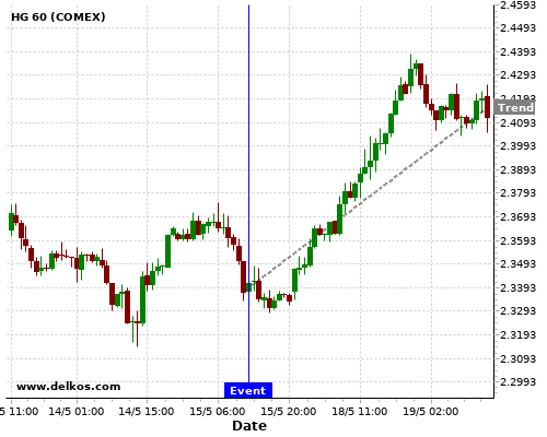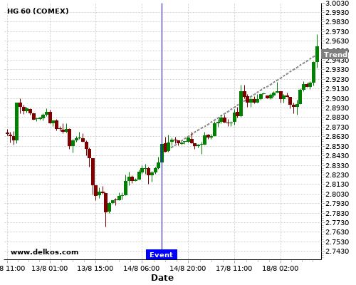 This probability is based on the last 12 US Retail Sales MoM events, in which 4 of the last 6 events where the actual number was less than than the economist consensus resulted in an up trend of HG.
