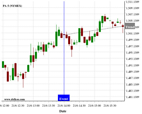 This probability is based on the last 12 US Existing Home Sales events, in which 5 of the last 6 events where the actual number was greater than than the economist consensus resulted in an up trend of PA.