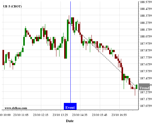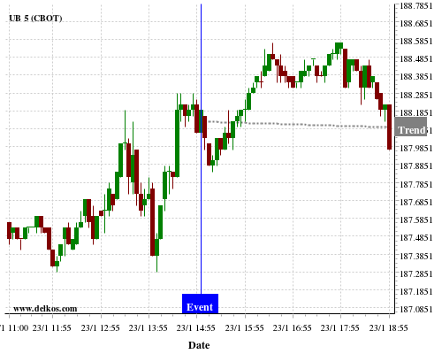 This probability is based on the last 12 EMU Consumer Confidence Flash events, in which 5 of the last 6 events where the actual number was less than than the economist consensus resulted in an down trend of UB.