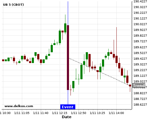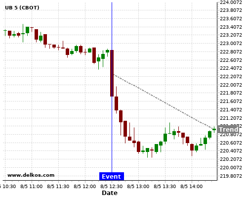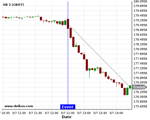 This probability is based on the last 12 US Non Farm Payrolls events, in which 5 of the last 6 events where the actual number was greater than than the economist consensus resulted in an down trend of UB.