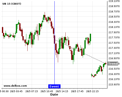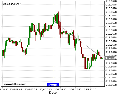 This probability is based on the last 12 US Continuing Jobless Claims events, in which 5 of the last 6 events where the actual number was less than than the economist consensus resulted in an down trend of UB.