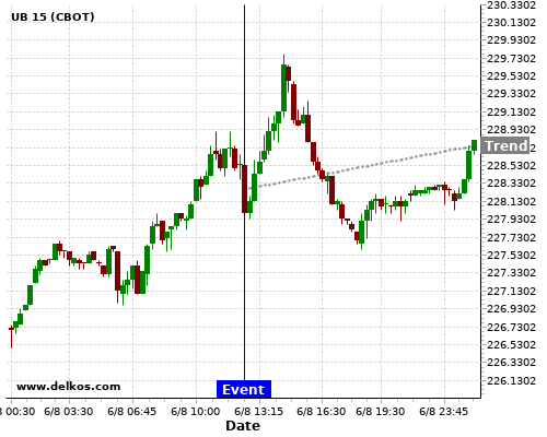 This probability is based on the last 12 US Continuing Jobless Claims events, in which 3 of the last 6 events where the actual number was less than than the economist consensus resulted in an up trend of UB.