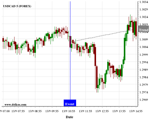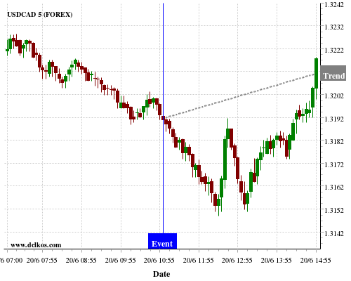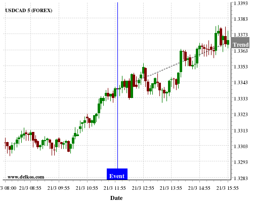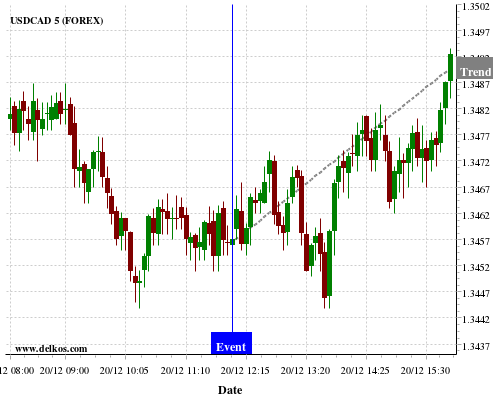 This probability is based on the last 12 GB BoE Interest Rate Decision events, in which 10 of the last 12 events where the actual number was equal to than the economist consensus resulted in an up trend of USDCAD.