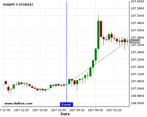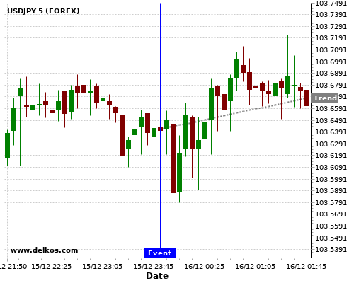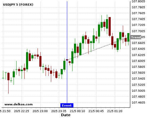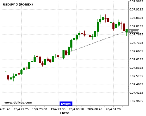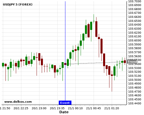 This probability is based on the last 12 JP Balance of Trade events, in which 5 of the last 6 events where the actual number was less than than the economist consensus resulted in an up trend of USDJPY.
