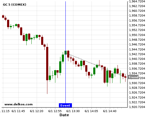 This probability is based on the last 12 US ADP Employment Change events, in which 6 of the last 7 events where the actual number was less than than the economist consensus resulted in an down trend of GC.