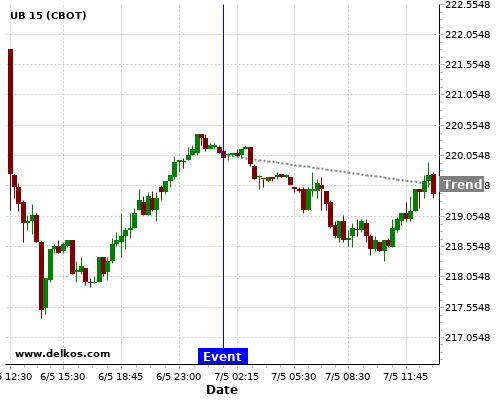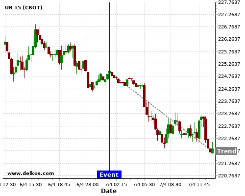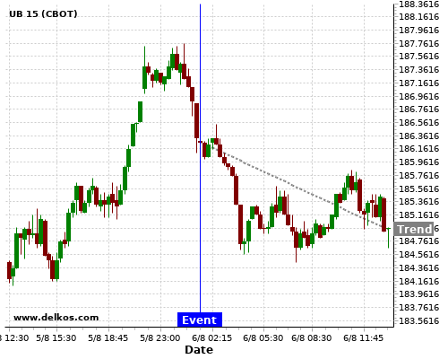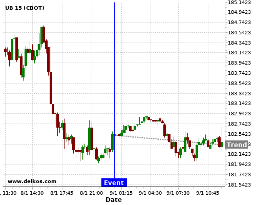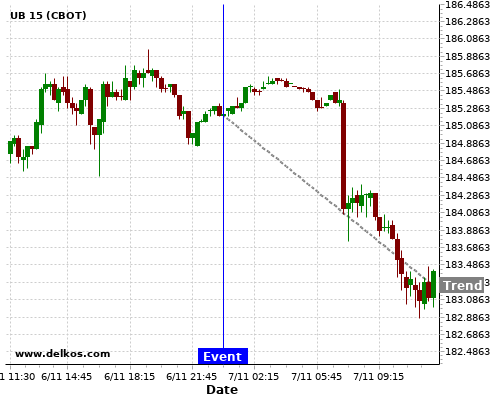 This probability is based on the last 12 AU Balance of Trade events, in which 6 of the last 7 events where the actual number was greater than than the economist consensus resulted in an down trend of UB.