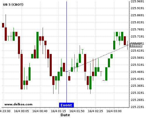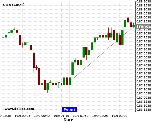 This probability is based on the last 12 AU Employment Change events, in which 6 of the last 7 events where the actual number was greater than than the economist consensus resulted in an up trend of UB.