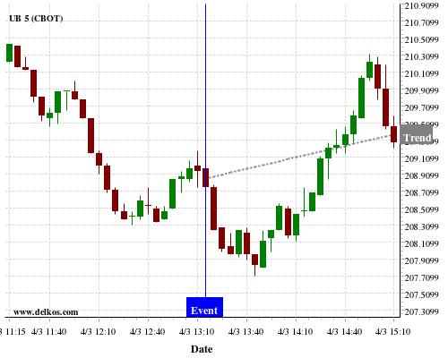 This probability is based on the last 12 US ADP Employment Change events, in which 6 of the last 7 events where the actual number was greater than than the economist consensus resulted in an up trend of UB.