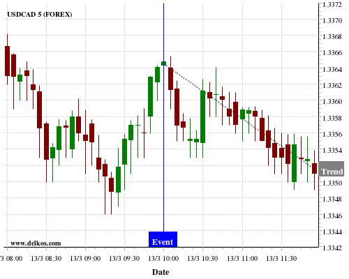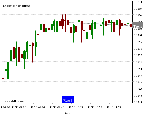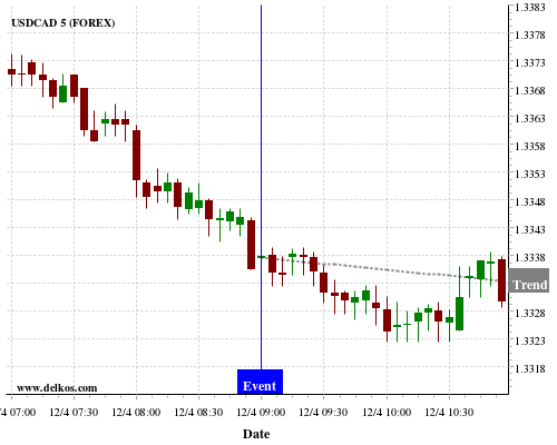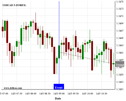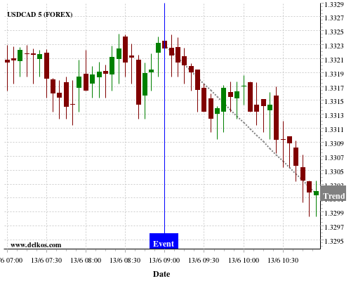 This probability is based on the last 12 EMU Industrial Production YoY events, in which 6 of the last 7 events where the actual number was greater than than the economist consensus resulted in an down trend of USDCAD.