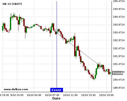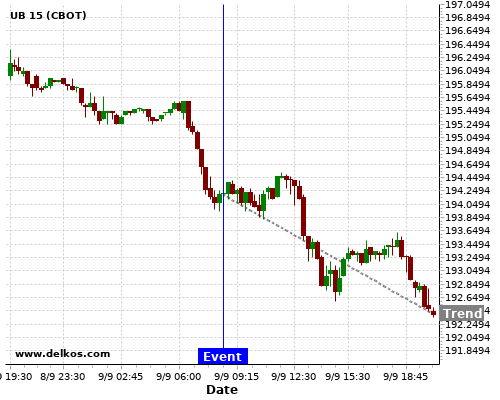 This probability is based on the last 12 GB Balance of Trade events, in which 5 of the last 8 events where the actual number was greater than than the economist consensus resulted in an down trend of UB.