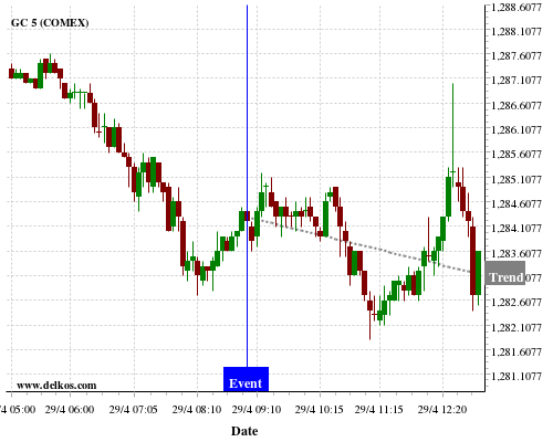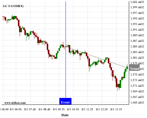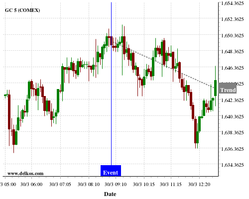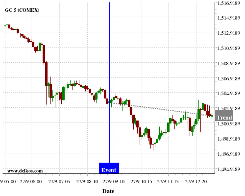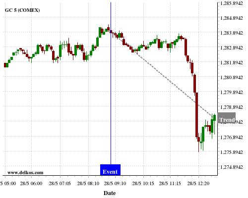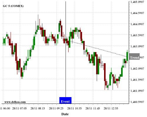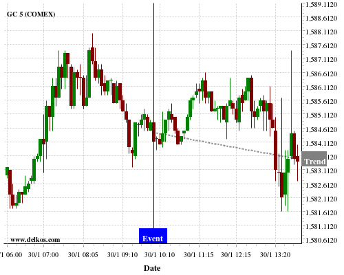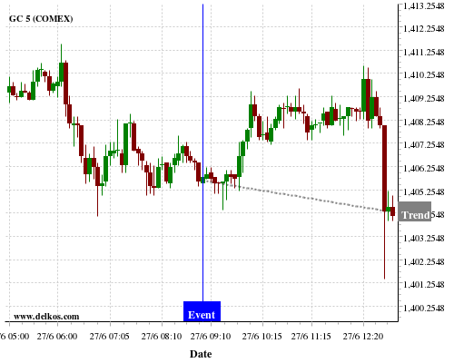 This probability is based on the last 12 EMU Business Confidence events, in which 8 of the last 9 events where the actual number was less than than the economist consensus resulted in an down trend of GC.