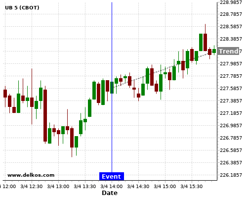 This probability is based on the last 12 US ISM Non-Manufacturing PMI events, in which 6 of the last 9 events where the actual number was greater than than the economist consensus resulted in an up trend of UB.