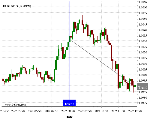 If the number is equal to than economists’ consensus there is a 70% probability that EURUSD will trend down following the news event.