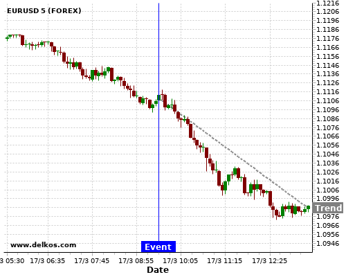 If the number is less than than economists’ consensus there is a 71.42% probability that EURUSD will trend down following the news event.