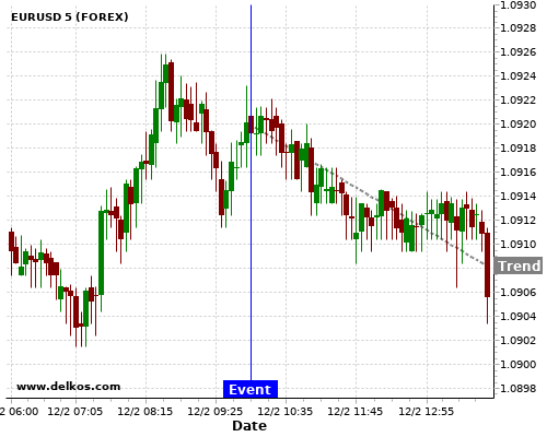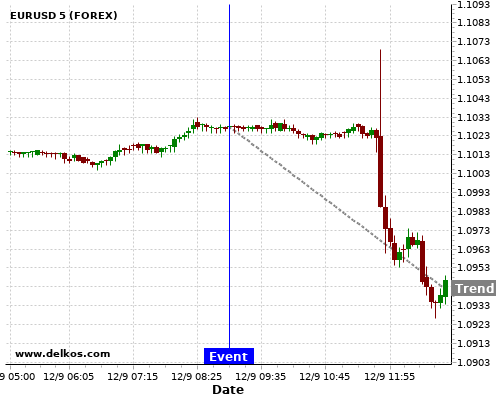 If the number is less than than economists’ consensus there is a 71.42% probability that EURUSD will trend down following the news event.