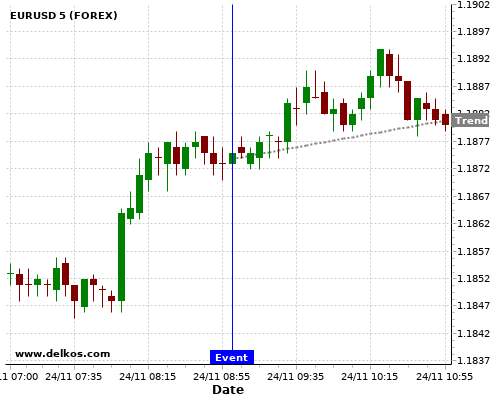 If the number is greater than than economists’ consensus there is a 71.42% probability that EURUSD will trend up following the news event.