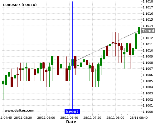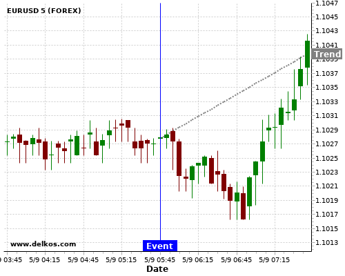 If the number is greater than than economists’ consensus there is a 71.42% probability that EURUSD will trend up following the news event.