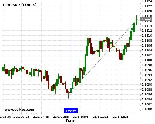 If the number is less than than economists’ consensus there is a 71.42% probability that EURUSD will trend up following the news event.