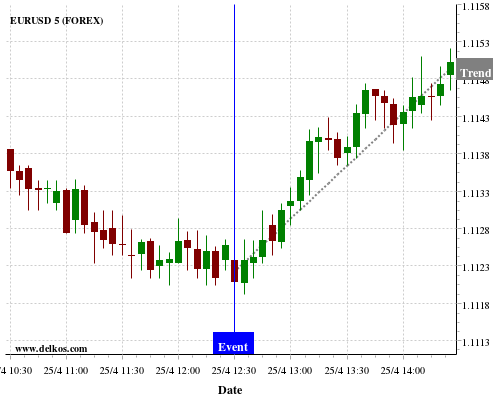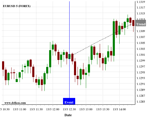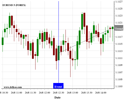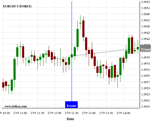 If the number is greater than than economists’ consensus there is a 71.42% probability that EURUSD will trend up following the news event.