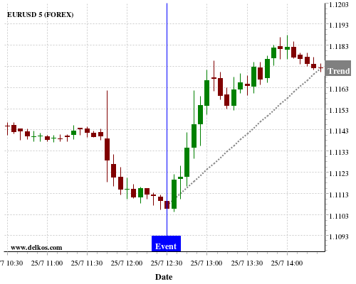 If the number is greater than than economists’ consensus there is a 71.42% probability that EURUSD will trend up following the news event.