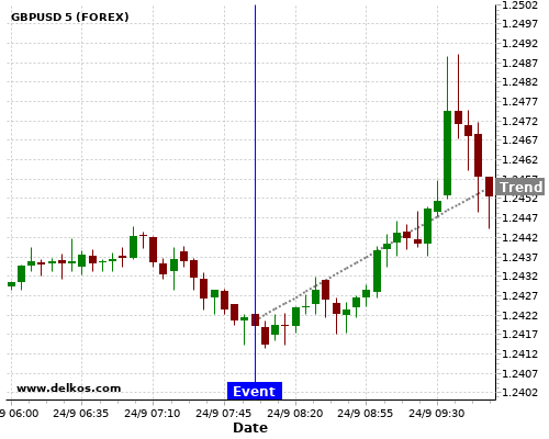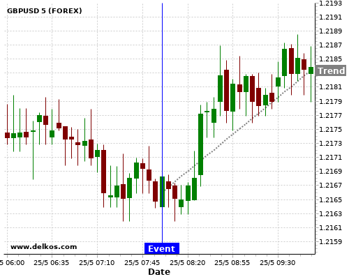 If the number is greater than than economists’ consensus there is a 71.42% probability that GBPUSD will trend up following the news event.