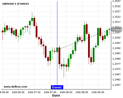 This probability is based on the last 12 DE Ifo Business Climate events, in which 5 of the last 7 events where the actual number was greater than than the economist consensus resulted in an up trend of GBPUSD.