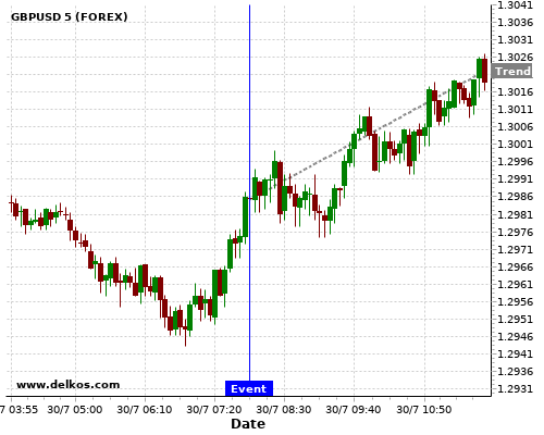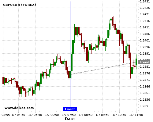 If the number is less than than economists’ consensus there is a 71.42% probability that GBPUSD will trend up following the news event.
