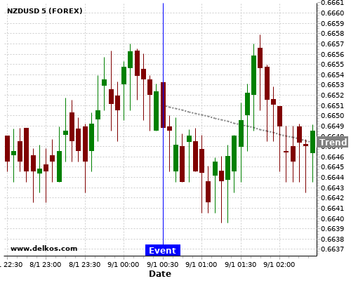 If the number is greater than than economists’ consensus there is a 71.42% probability that NZDUSD will trend down following the news event.