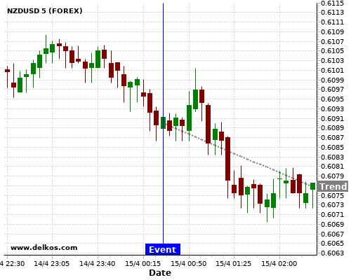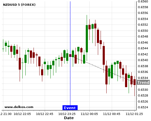 If the number is less than than economists’ consensus there is a 71.42% probability that NZDUSD will trend down following the news event.