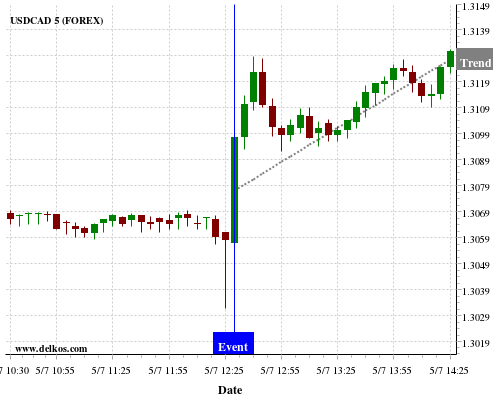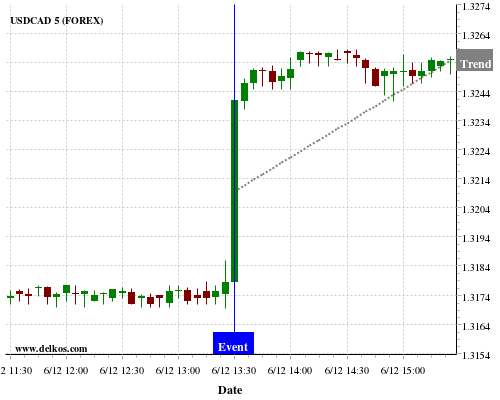 If the number is greater than than economists’ consensus there is a 71.42% probability that USDCAD will trend up following the news event.