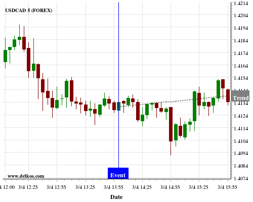 If the number is greater than than economists’ consensus there is a 71.42% probability that USDCAD will trend up following the news event.