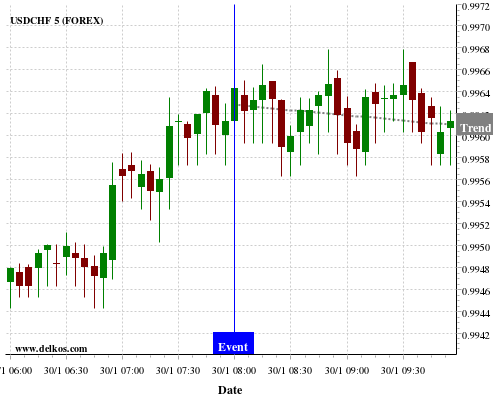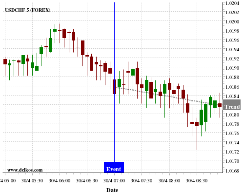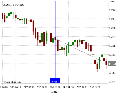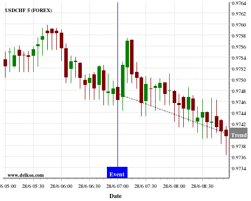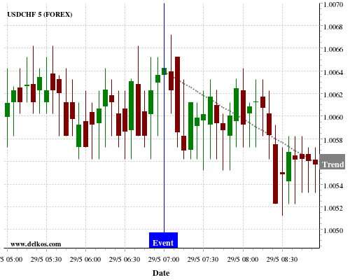 If the number is less than than economists’ consensus there is a 71.42% probability that USDCHF will trend down following the news event.