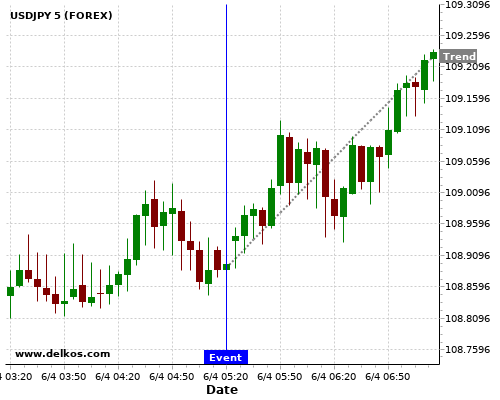 If the number is less than than economists’ consensus there is a 71.42% probability that USDJPY will trend up following the news event.