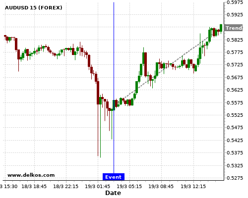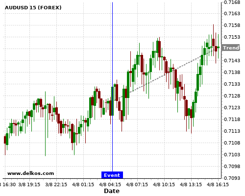 If the number is equal to than economists’ consensus there is a 72.72% probability that AUDUSD will trend up following the news event.