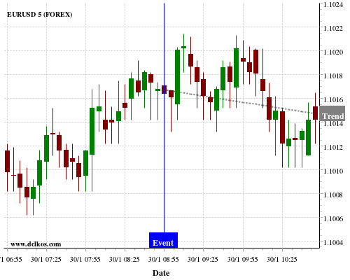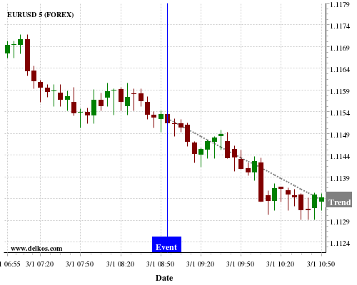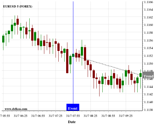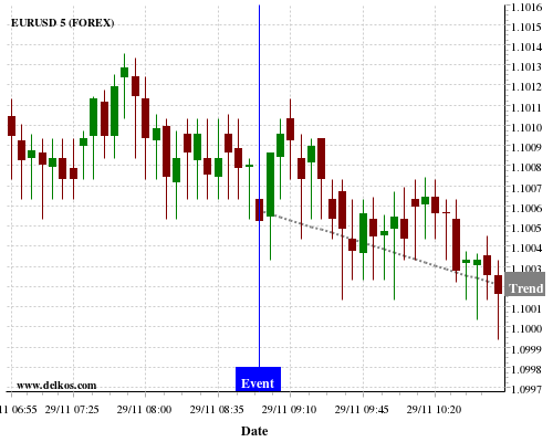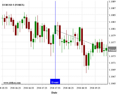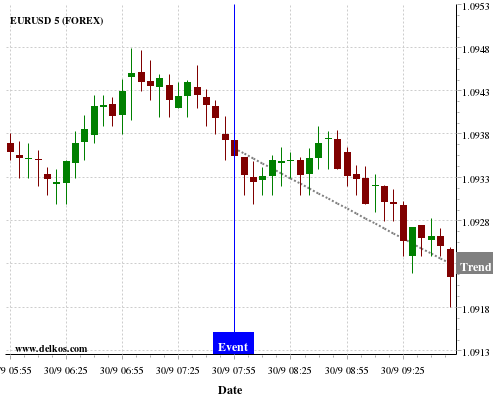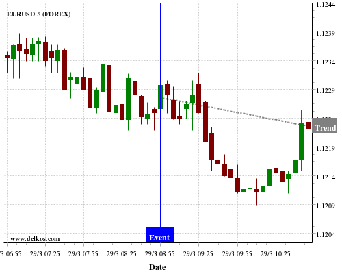 If the number is equal to than economists’ consensus there is a 72.72% probability that EURUSD will trend down following the news event.